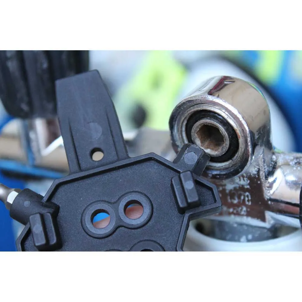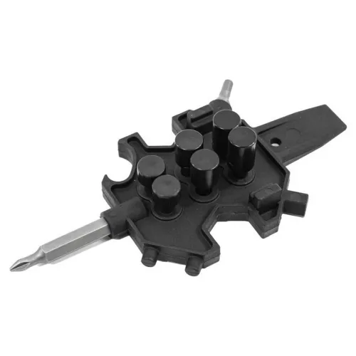 Questo dispositivo indispensabile è più di un semplice strumento; è una stazione di manutenzione completa che sta nel palmo della tua mano. Il suo design intelligente fornisce una funzione dedicata per ogni componente chiave della tua maschera da immersione integrata. Le caratteristiche principali includono una chiave specializzata per la rimozione e l´installazione sicura della visiera principale, uno strumento preciso per la regolazione dell´erogatore di secondo stadio e uno strumento personalizzato per la manutenzione della valvola dell´aria di superficie (SAV). Incorpora anche una chiave per i collegamenti dei tubi flessibili e altri driver essenziali, assicurandoti di avere tutto il necessario per una manutenzione completa sul campo. La sua forma ergonomica è progettata per una presa sicura, anche quando si indossano guanti da immersione. Specifiche Tecniche: