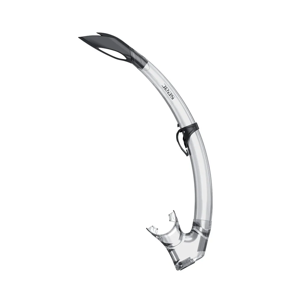 Snorkel con top anti-splash e valvola di scarico. Corpo in tecnopolimero e policarbonato, boccaglio in silicone liquido. Il ridotto volume interno del tubo, che ne diminuisce la quantità di aria espirata ricca di anidride carbonica, lo rende particolarmente adatto a ragazzi e persone di corporatura minuta.