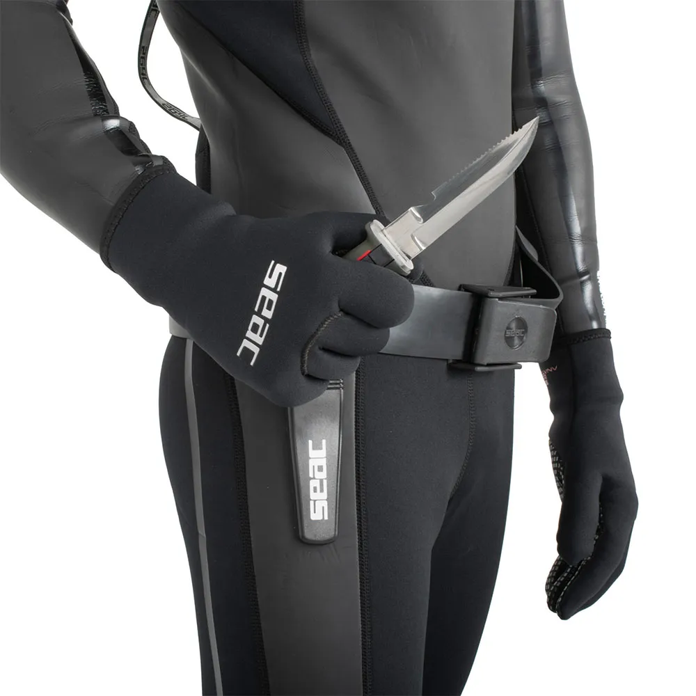 Immergiti con sicurezza con il coltello SEACSUB Bat, il tuo strumento di sicurezza essenziale per ogni avventura subacquea. Questo robusto coltello è dotato di una versatile lama in acciaio inossidabile AISI 420 da 11.5 cm, che offre sia un bordo liscio curvo che un bordo dritto seghettato con un taglia-sagola integrato. L´impugnatura antiscivolo e sovrastampata offre una presa sicura, mentre il pulsante di sgancio integrato consente un rapido dispiegamento. Viene fornito completo di un fodero rigido e pratiche cinghie per un comodo fissaggio al braccio o all´avambraccio, assicurando che questo accessorio vitale sia sempre a portata di mano