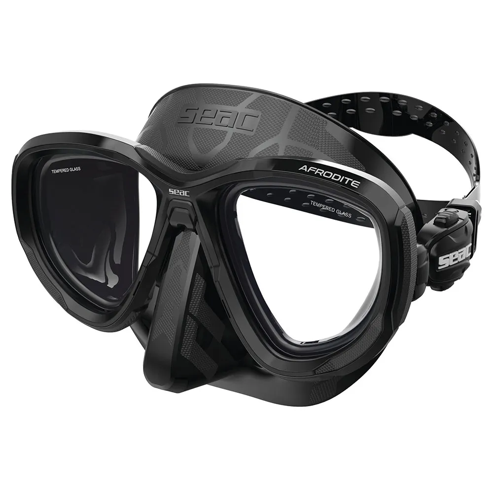La SEACSUB Afrodite è progettata per sembrare un´estensione naturale della tua visione. Il suo vantaggio principale risiede nel suo comfort eccezionale e nella tenuta superiore, permettendoti di concentrarti sulla bellezza che ti circonda senza la distrazione di una maschera che perde o è scomoda. Il design ergonomico è adatto a una vasta gamma di forme del viso, rendendola una scelta eccellente sia per uomini che per donne. L´elegante montatura e il facciale neri offrono un look classico e professionale, garantendo al contempo la durata per innumerevoli avventure acquatiche.