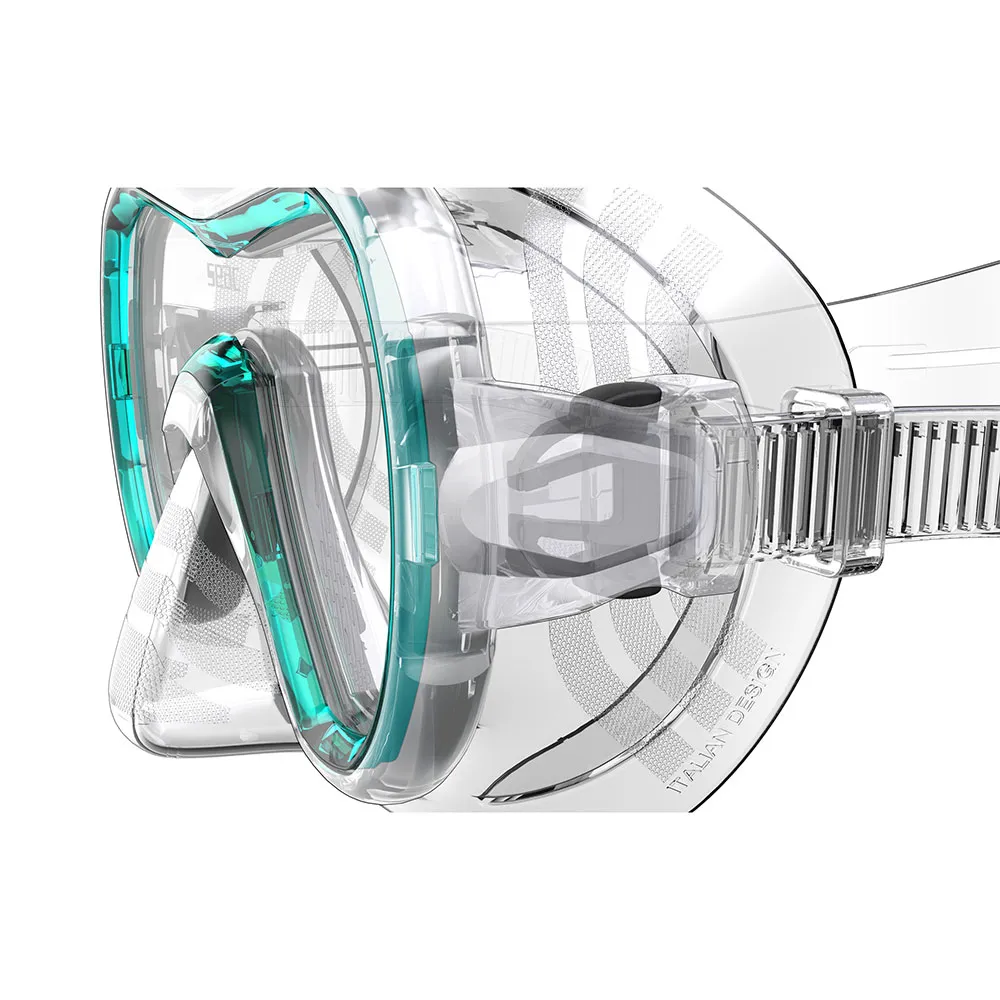 La maschera Giglio rivoluziona l´esperienza subacquea con il suo design eccezionale. Il suo cuore è una maschera monolente con vetro temperato e un facciale in silicone colorato, progettata per offrire una migliore vestibilità per visi più stretti e per i bambini. Questa costruzione monolente offre una vista panoramica mozzafiato, ampia e ininterrotta, eliminando la cornice centrale che può ostruire la visione nelle tradizionali maschere a due lenti. Il vetro temperato trasparente e cristallino non è solo altamente durevole e resistente ai graffi, ma soddisfa anche i più elevati standard di sicurezza per le immersioni, dando tranquillità ai genitori mentre i loro figli acquisiscono fiducia in acqua.