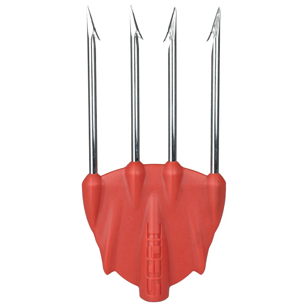 Il SEACSUB Killer 4P Heavy M7 Trident vanta quattro punte affilate come rasoi, trattate termicamente, posizionate strategicamente per una perforazione e una ritenzione del pesce ottimali. Queste punte sono realizzate in acciaio inossidabile di alta qualità, garantendo eccezionale durata e resistenza alla corrosione, anche in ambienti di acqua salata. La designazione "Heavy" indica la sua costruzione rinforzata, in grado di resistere alle sollecitazioni di fucili subacquei potenti e colpi impattanti. La filettatura M7 assicura la compatibilità con un´ampia gamma di aste per fucili subacquei, offrendo versatilità e opzioni di personalizzazione per la tua configurazione di pesca subacquea.