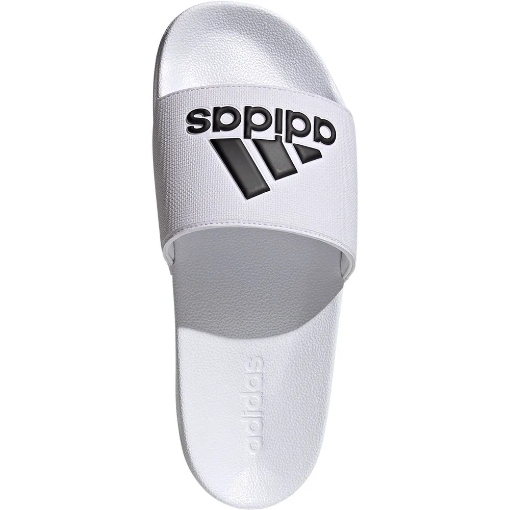 De adidas Badge of Sport maakt de iconische Adilette-look compleet.