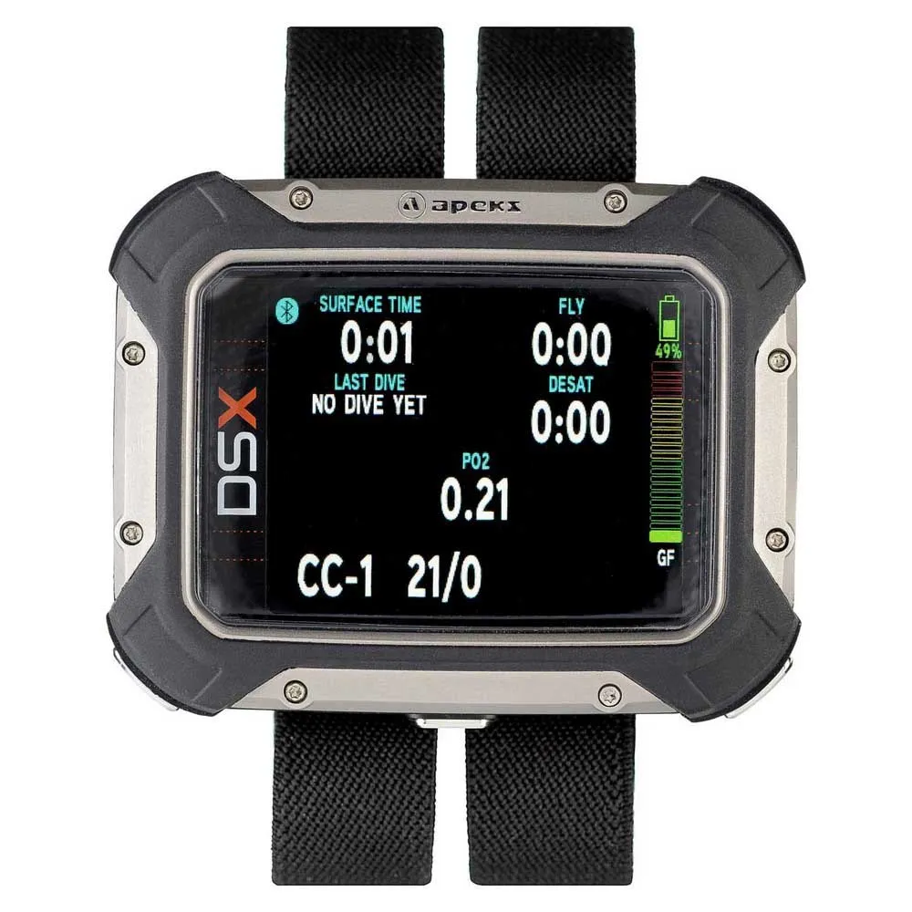 De nieuwe DSX technische duikcomputer is het nieuwste op het gebied van draagbare technologie voor de serieuze technische duiker, of de duiker die gewoon op zoek is naar het beste instrument op de markt, om ze naar een hoger niveau te tillen. Robuust zoals alleen Apeks weet hoe, en volledig geladen met geavanceerde functies, waaronder sidemount- en CCR-modus, opladen via inductie of kabel en beheer van maximaal 6 gassen. De DSX is voorbereid en klaar om u mee te nemen op uw volgende avontuur.