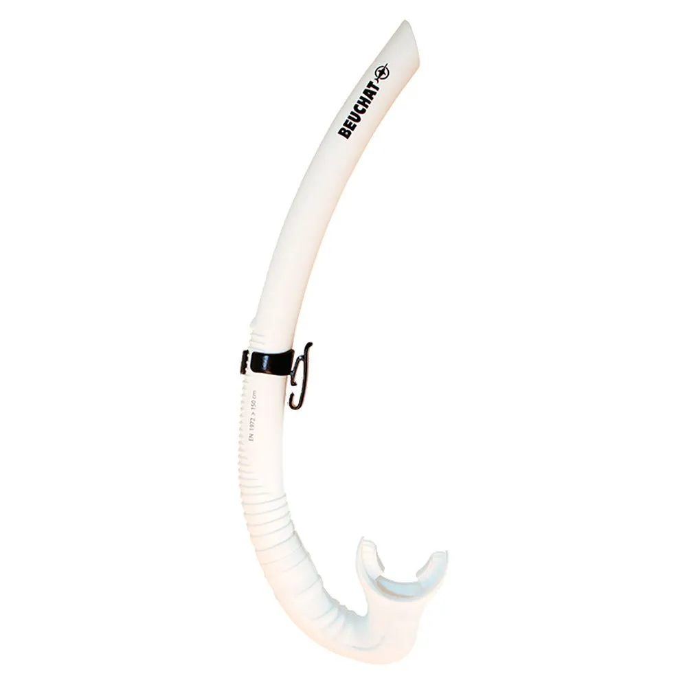 Veelzijdigheid vormt de kern van het Spy-ontwerp. De constructie valt in de categorie ´Softs´, met een flexibele buis die kan worden gebogen of zelfs gevouwen. Dit maakt het ongelooflijk eenvoudig om hem op te bergen in een BCD-zak of te bevestigen aan een loodgordel, en dient als een uitstekende, onopvallende back-up snorkel voor duiken of als primair hulpmiddel voor lichtgewicht snorkelavonturen. De eenvoudige en robuuste snorkelhouder zorgt voor een veilige bevestiging aan je maskerband zonder extra volume of complexiteit toe te voegen. Kies de BEUCHAT Spy voor een directe, betrouwbare en intieme verbinding met de onderwaterwereld Technische Specificaties: