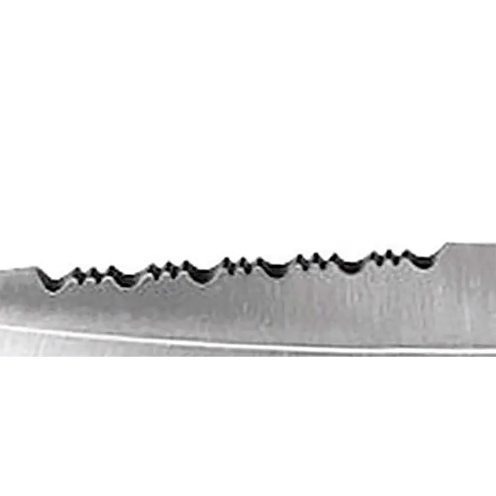 Deel van de ruitvormige plaat voor grotere weerstand tegen buigen en breken. Een deel heeft een gladde rand en het andere heeft alternerende tanden en draadkniptangen.