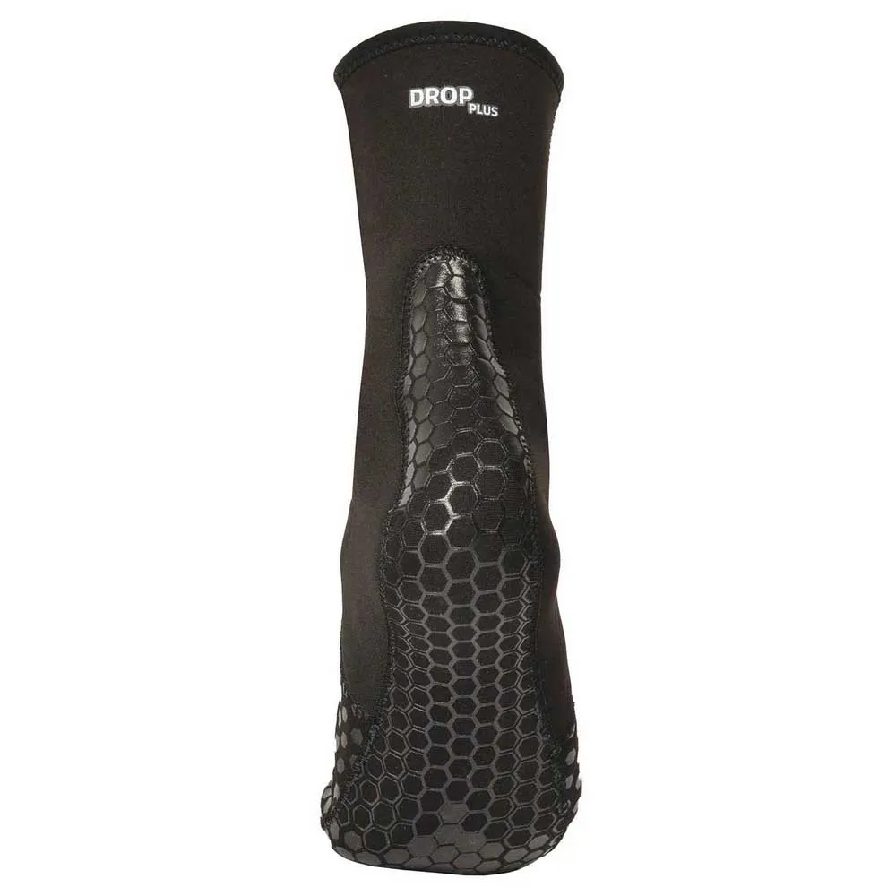 Deze sokken zijn gebouwd om de ontberingen van het speervissen te weerstaan. De versterkte teen- en hielgedeeltes bieden superieure bescherming tegen scherpe rotsen, koraal en andere onderwatergevaren. Het "drop" ontwerp, met een kortere schacht, zorgt voor meer flexibiliteit van de enkel, cruciaal voor efficiënt vinnen en manoeuvreren in krappe ruimtes.