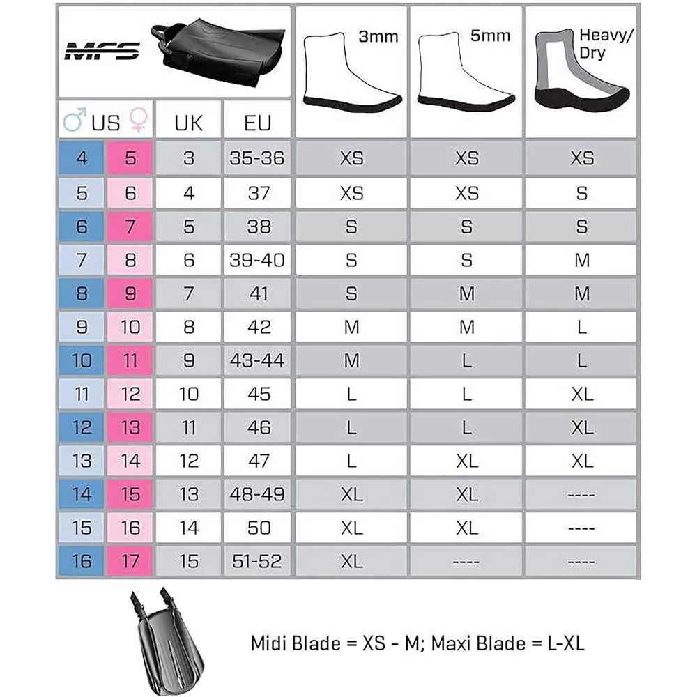 De vinnen van SCUBAPRO zijn verkrijgbaar in verschillende maten, zodat duikers het juiste blad kunnen kiezen voor hun vaardigheidsniveau, duikcondities en persoonlijke voorkeur. Het assortiment bladmaten zorgt ervoor dat duikers de perfecte balans kunnen vinden tussen kracht, snelheid en manoeuvreerbaarheid.