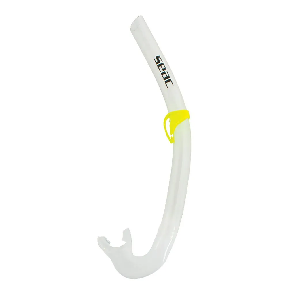 Perfect gecombineerd met het masker is de SEACSUB Minijet Snorkel, speciaal ontworpen voor jongere of kleinere gebruikers. De snorkel heeft een semi-droge top met een effectieve anti-spatbescherming, die het binnendringen van water door golven en oppervlaktebewegingen drastisch minimaliseert. Deze belangrijke functie vergroot het vertrouwen in het water, waardoor de snorkelaar natuurlijker kan ademen en zich kan concentreren op de bezienswaardigheden onder water. Voor eventueel binnendringend water zorgt een groot leegloopventiel aan de onderkant van de snorkel voor moeiteloos en direct legen met een simpele uitademing. De ergonomisch gevormde buis en een comfortabel, hypoallergeen mondstuk verminderen kaakvermoeidheid, waardoor het ideaal is voor langere snorkelsessies. Een verstelbare houder zorgt ervoor dat de snorkel te allen tijde stevig aan de maskerband blijft zitten.