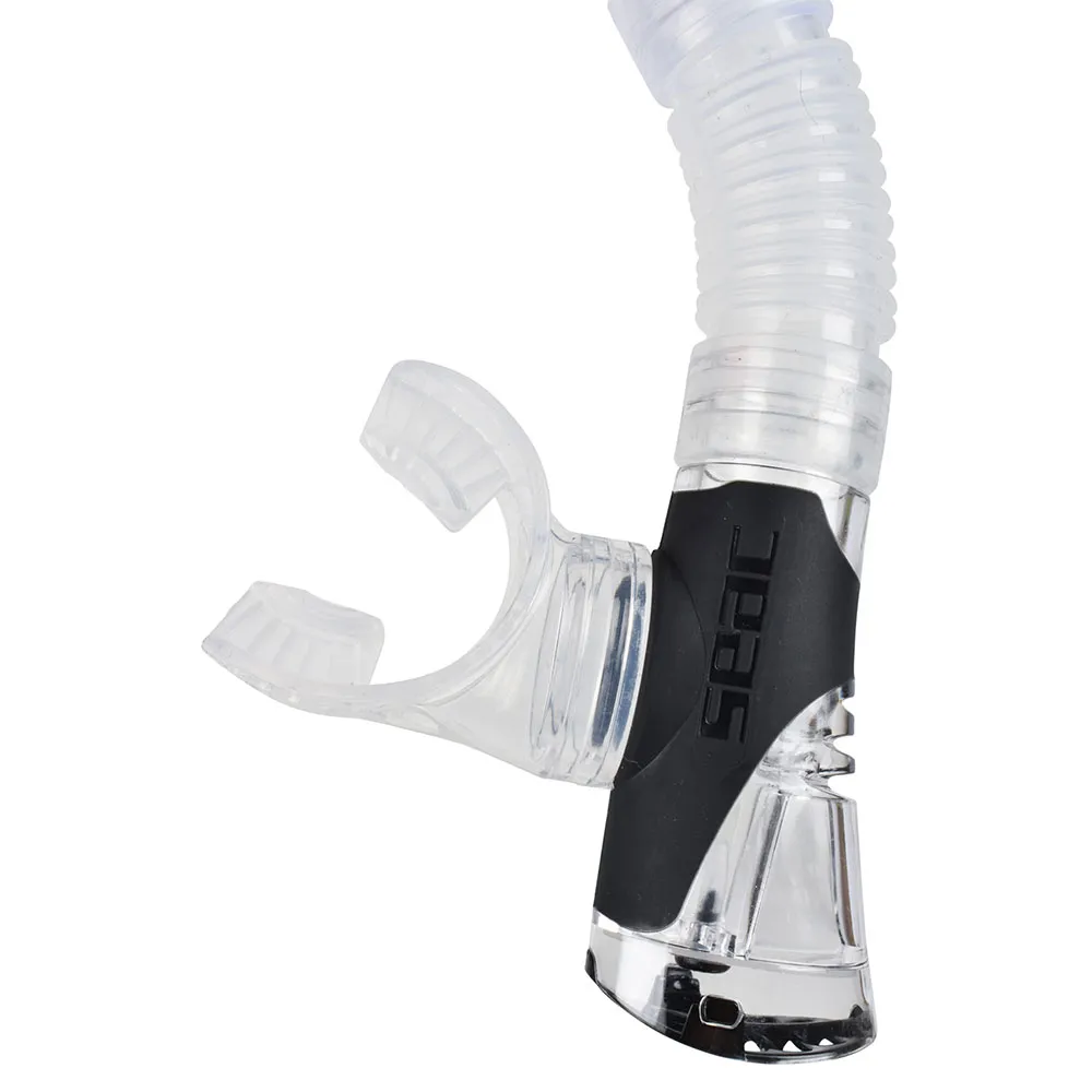 Gecontourneerde J-vormige duiksnorkel, ideaal voor freediving en diepzeespeervissen. Top anti-spatfunctie blokkeert effectief water dat de snorkel binnendringt. Ovaal spoelklepsysteem voor snel legen van water. Duurzaam PVC met geribbelde flexibele slang om de hoek van het mondstuk te beheren. Siliconen mondstuk met comfortabele ergonomische pasvorm. De Seac Fast Tech snorkel is een uitstekende keuze voor freediving en beschikt over een anti-spat bovenkant die effectief voorkomt dat er water in de snorkel komt.
