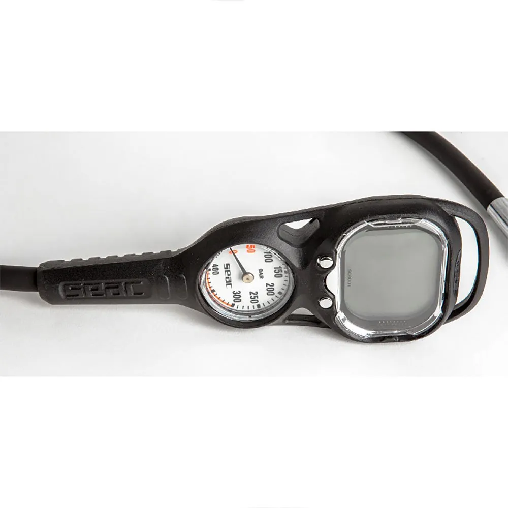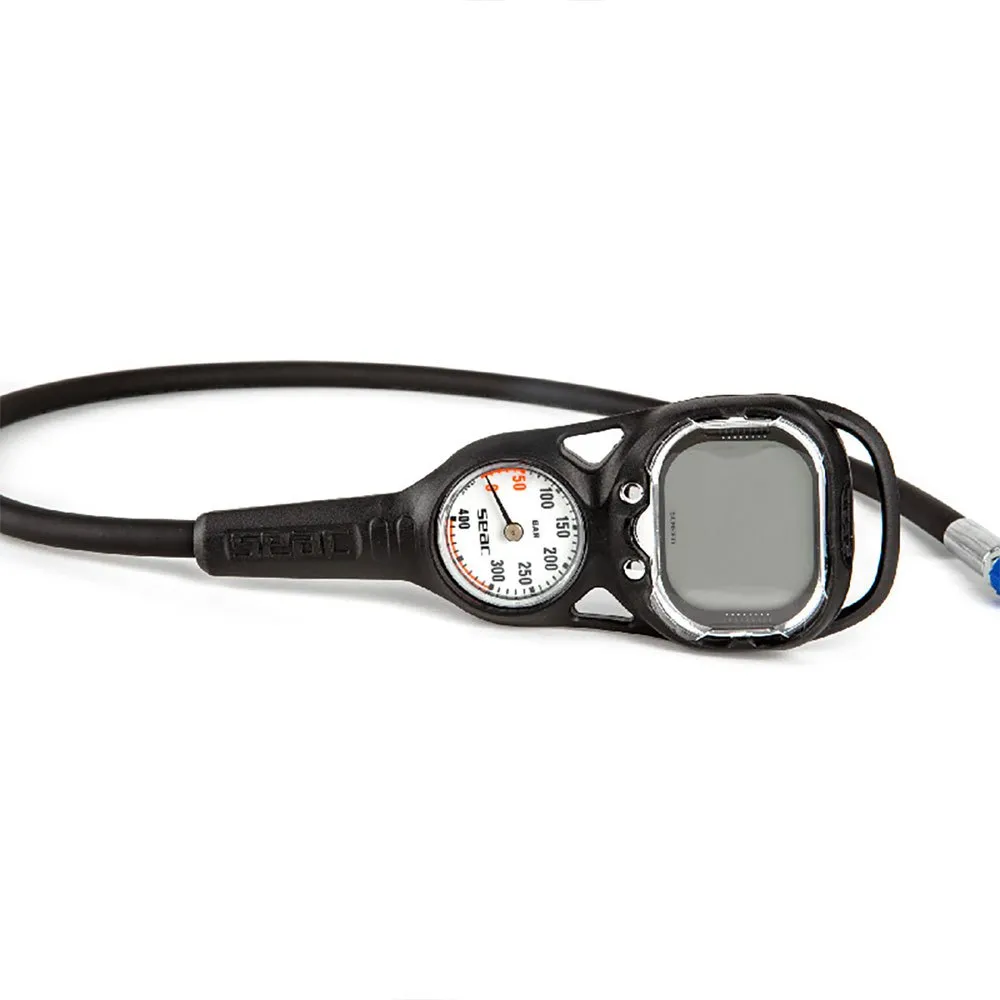Krijg al je duikgegevens in één duidelijk overzicht met de SEAC Screen Console, die een gebruiksvriendelijke duikcomputer combineert met een betrouwbare manometer. Het extra grote scherm met hoog contrast toont alle kritieke informatie in één oogopslag, met instelbare helderheid voor elke omstandigheid. Navigeer eenvoudig door de Scuba-, Gauge- en Freedive-modi met behulp van twee grote knoppen, zelfs met dikke handschoenen. Het beheert 1-2 Nitrox-mengsels, beschikt over een duikplanner en logboek, en bevat een lange band voor droogpakken. Het is het complete, leesbare en robuuste instrument voor elke duik