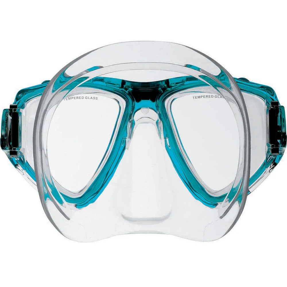 Het is een duikmasker met twee symmetrische geharde glazen lenzen, polycarbonaat structuur en een anatomisch gevormde rok gemaakt van hypoallergene vloeibare siliconen.