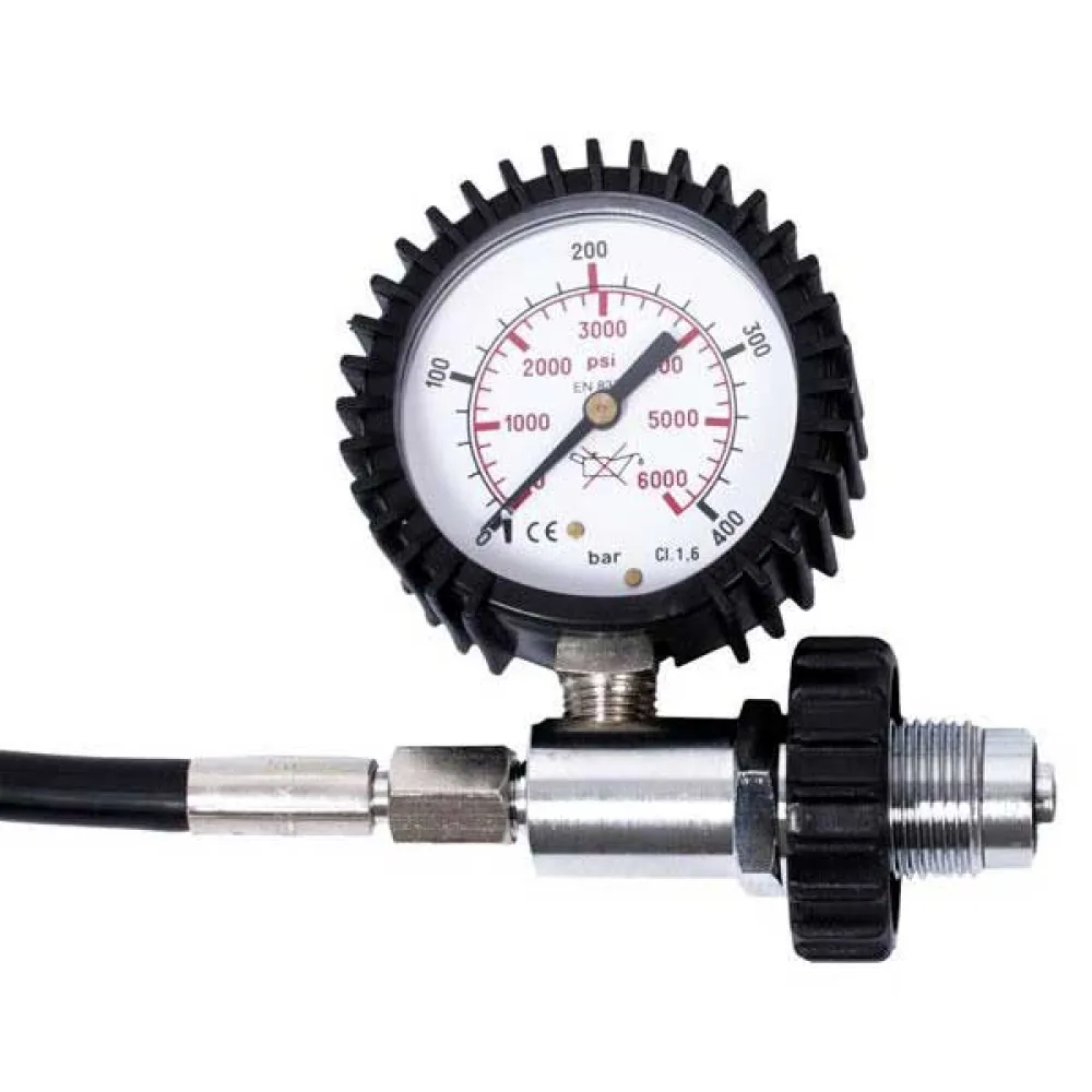 Ervaar ongeëvenaarde controle en gemoedsrust bij elke duik. De kern van dit systeem is de precisie en het gebruiksvriendelijke ontwerp. Elke equalizer is uitgerust met een duidelijke, gemakkelijk af te lezen manometer, waarmee u het overdrachtsproces in realtime kunt volgen. Deze cruciale functie voorkomt onbedoelde overdruk en zorgt ervoor dat u met vertrouwen de exacte drukbalans kunt bereiken die u nodig heeft. Bovendien is de geïntegreerde ontluchtingsknop (bleed valve) een essentiële veiligheids- en gemaksvoorziening. Hiermee kunt u de slang veilig ontluchten nadat de overdracht is voltooid, waardoor u de fittingen moeiteloos kunt loskoppelen zonder de plotselinge vrijgave van hogedrukgas, wat zowel de gebruiker als de O-ringen van de apparatuur beschermt tegen schade.