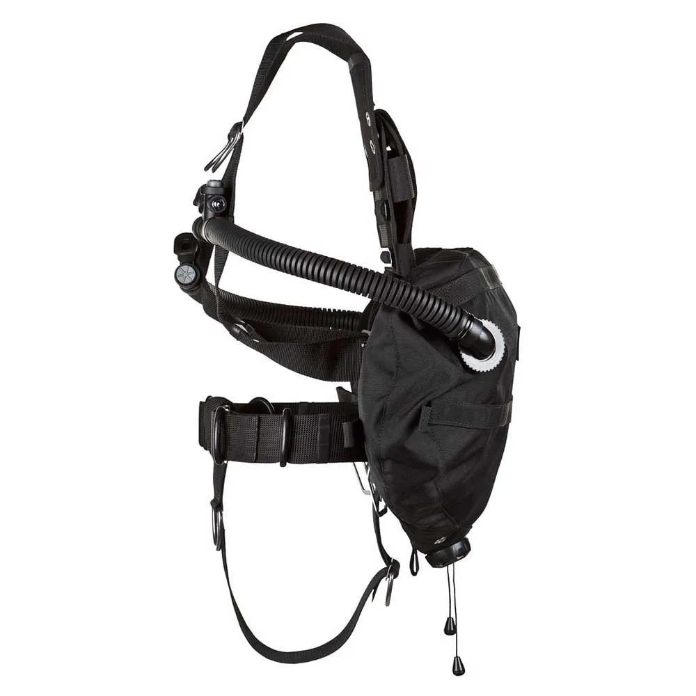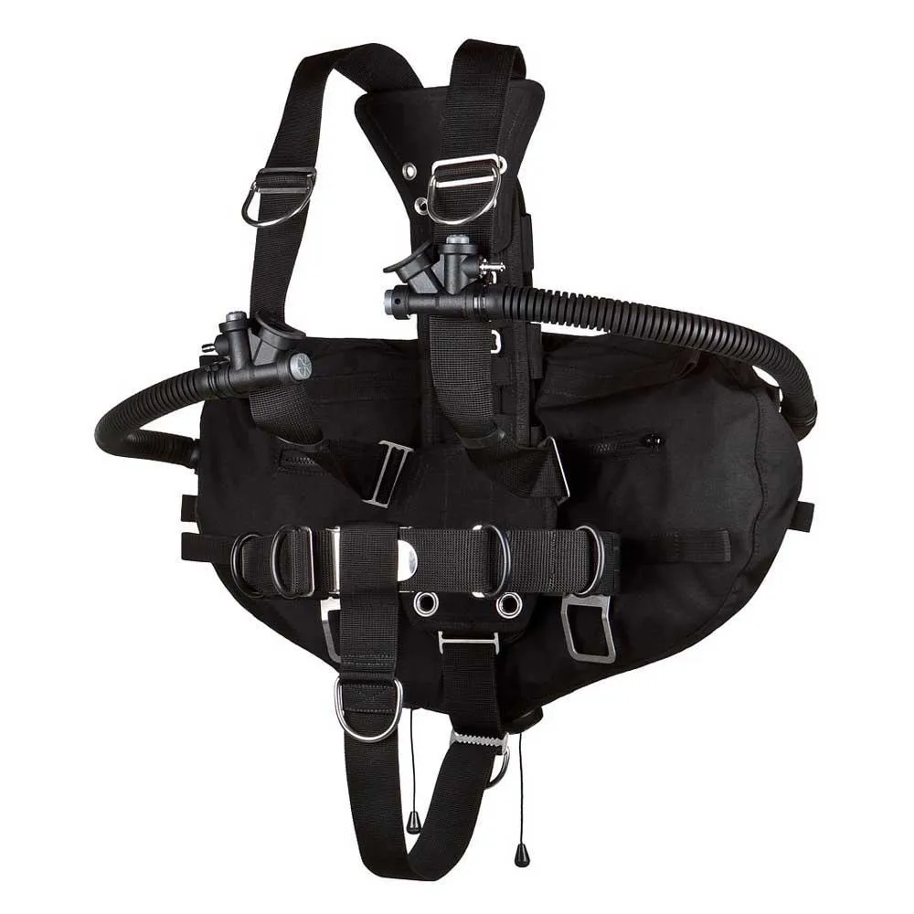 Type: Sidemount BCD onafhankelijk van het harnas. Gemonteerd op het duikerslichaam met zijn eigen harnas.