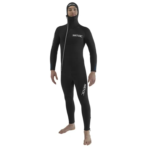 Seac Club er en våtdrakt i 7 eller 5 mm med integrert hette, Powertex-beskyttelse på skuldre, knær og korsrygg.
