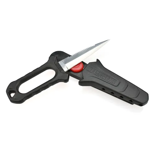 Et must for spearfishing. Ergonomisk, spiss og skarp, både KNIV og DAGGER. Den kan bæres på beltet eller på benet. Marine stål: godt vedlikeholdt, det ruster ikke.