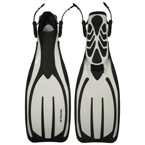 TECNOMAR Exceed dykkefinner er designet for optimal ytelse og komfort. Finnene har en strømlinjeformet design som reduserer motstand og øger effektiviteten, slik at du kan bevege deg uanstrengt gjennom vannet. Den åpne hældesignen med justerbare stropper sikrer en sikker og komfortabel passform for alle fotstørrelser.