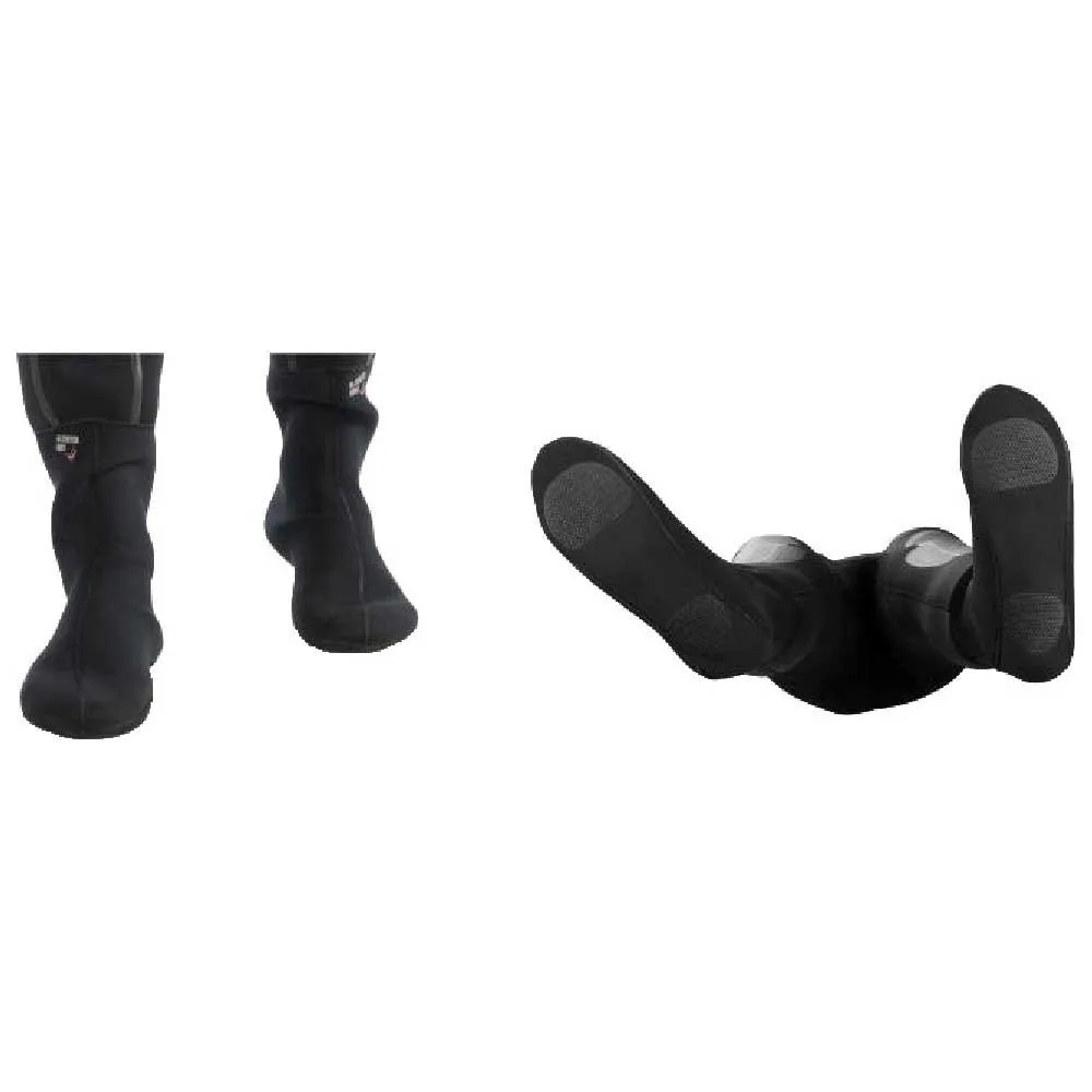 Wygodny i odporny dzięki skompresowanemu, neoprenowemu skafandrze o grubości 4 mm High Density i zabezpieczonym szwom Liquid Seal. Szwy i zewnętrzna podszewka z neoprenu pokryte są specjalną warstwą elastomeru, aby jednocześnie stworzyć nieprzepuszczalną przeszkodę dla wody oraz zwiększoną odporność na połączenia. Od wewnątrz dodatkowy pasek uszczelniający gwarantuje całkowitą wodoodporność. Ten system podwójnego uszczelnienia został starannie zaprojektowany, aby sprostać potrzebom najbardziej wymagających i doświadczonych nurków, którzy często wymagają, aby ich suche skafandry były w stanie przystosować się do ekstremalnych warunków pracy lub pogody. W części zewnętrznej zastosowano również specjalny materiał Span flex, aby zwiększyć elastyczność i odporność na ścieranie. Mankiety wykonane są od wewnątrz z gładkiego neoprenu o grubości 3,5 mm w celu poprawy szczelności oraz z Ultra span na zewnątrz w celu poprawy elastyczności. Kołnierz jest wykonany z tych samych materiałów, ale z neoprenu o grubości 2,5 mm dla większego komfortu i oddychalności po podniesieniu. Linie ramion i kolan są wzmocnione specjalną wyściółką antyścierną X Diamond Pad. Kombinezon posiada praktyczną kieszeń wielofunkcyjną umieszczoną na prawej nogawce oraz wygodny kaptur.