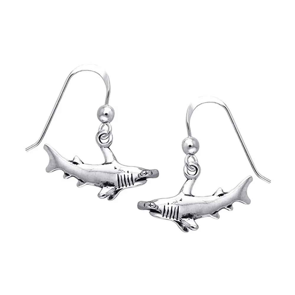 Dive Silver Hammerhead Shark Horizontal Long Hook Kolczyk