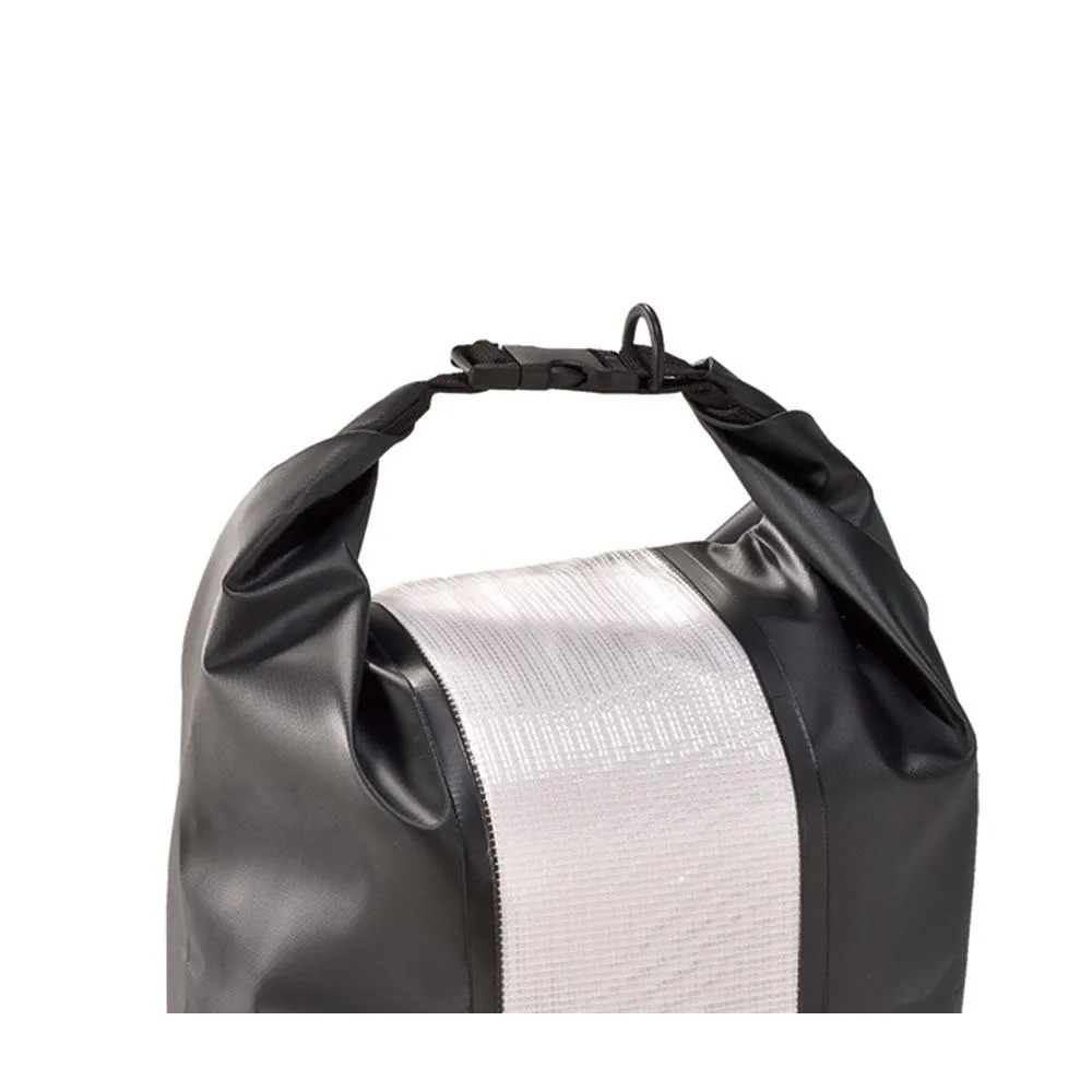 Kluczem do jego nieprzepuszczalnego uszczelnienia jest starannie zaprojektowany system zamykania. Posiada klasyczny i skuteczny system zamykania typu roll-top, zabezpieczony solidnym zapięciem na klamry i podwójnymi taśmami ochronnymi, przeznaczony na ubrania lub większe przedmioty (30 litrów). Ta sprawdzona metoda pozwala na wielokrotne zwinięcie górnej części, aby stworzyć hermetyczne i wodoszczelne uszczelnienie, które następnie jest blokowane za pomocą solidnych klamer bocznych. Podwójne taśmy dodają dodatkową warstwę wzmocnienia i bezpieczeństwa, zapewniając, że zamknięcie pozostaje nienaruszone, nawet gdy torba jest w pełni zapakowana lub poddana ciśnieniu zewnętrznemu.