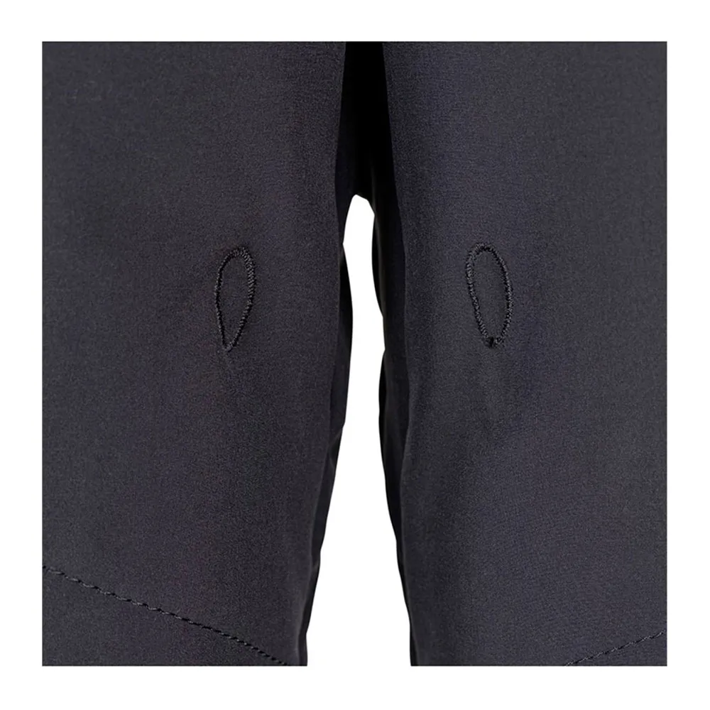 Estribos de lycra mantêm as calças no lugar ao vestir a roupa seca.