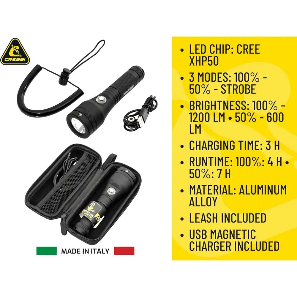 Lanterna de Mergulho LED Recarregável CRESSI Astra | Luz Subaquática Potente