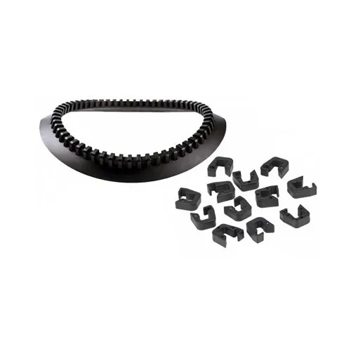 O anel de pescoço e o anel de trava são feitos de um material mais macio e clipes são adicionados para manter a vedação do pescoço no lugar.