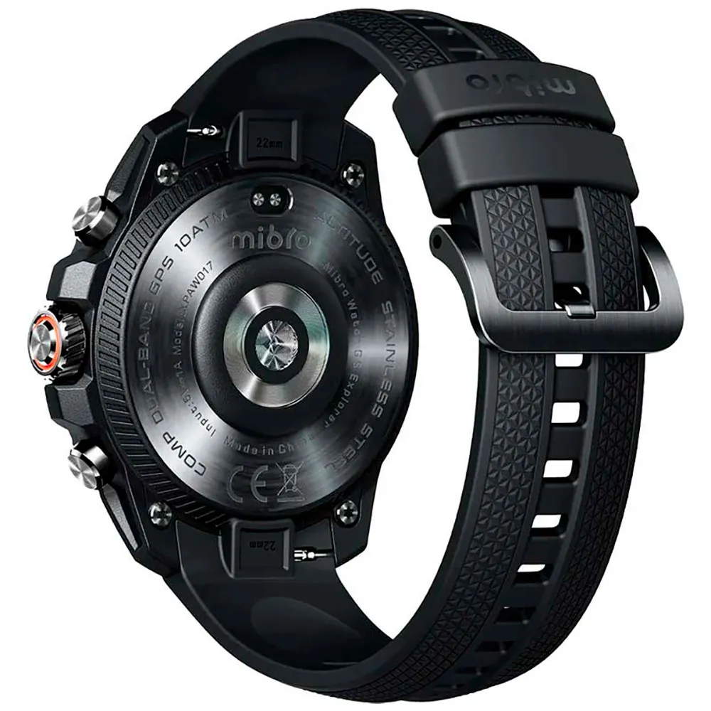 Smartwatch Mibro GS Explorer preto com design robusto, tela AMOLED de 1500 nits, GPS e resistência à água de 10 ATM.