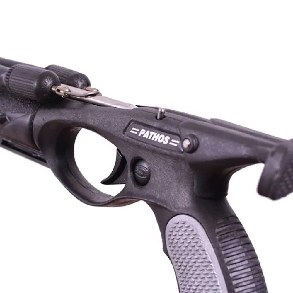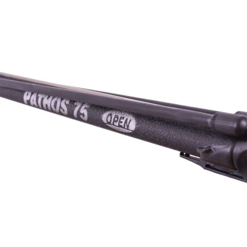 A PATHOS Open 100 Sling Speargun é compatível com uma estilingue simples ou dupla, dependendo das preferências pessoais de tiro. Possui também um sistema de liberação de linha, permitindo recarga rápida e maior eficiência de tiro. Além disso, a arma inclui um ponto de fixação para carretel para aqueles que preferem usar uma configuração de carretel.