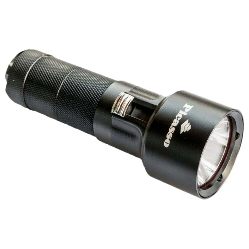 Esta lanterna de pesca submarina oferece um feixe de luz potente e focado, perfeito para iluminar buracos escuros debaixo d´água. Seu design leve e compacto é confortável e permite fácil operação com uma mão. Uma característica fundamental é o carregamento micro USB conveniente com um indicador de status da bateria vermelho/verde. Embora sua bateria exija carregamento mais frequente, os usuários elogiam sua excelente qualidade e valor. O corpo pode riscar, por isso uma capa protetora de neoprene é recomendada para durabilidade.