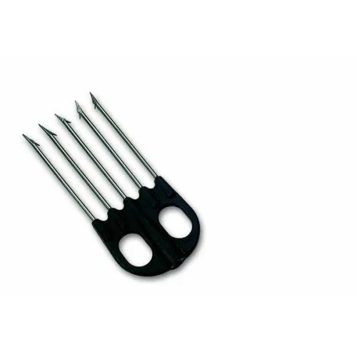 As cinco pontas do tridente são estrategicamente posicionadas para maximizar os danos e evitar a fuga. A ponta central proporciona penetração profunda, enquanto as quatro pontas circundantes criam um canal de ferimento mais amplo e prendem o peixe com firmeza. Este design é particularmente eficaz em peixes maiores e mais poderosos que, de outra forma, poderiam escapar de um arpão de ponta única. As pontas afiadas e precisamente afiadas garantem um abate rápido e humano, minimizando o sofrimento e maximizando sua eficiência como caçador.
