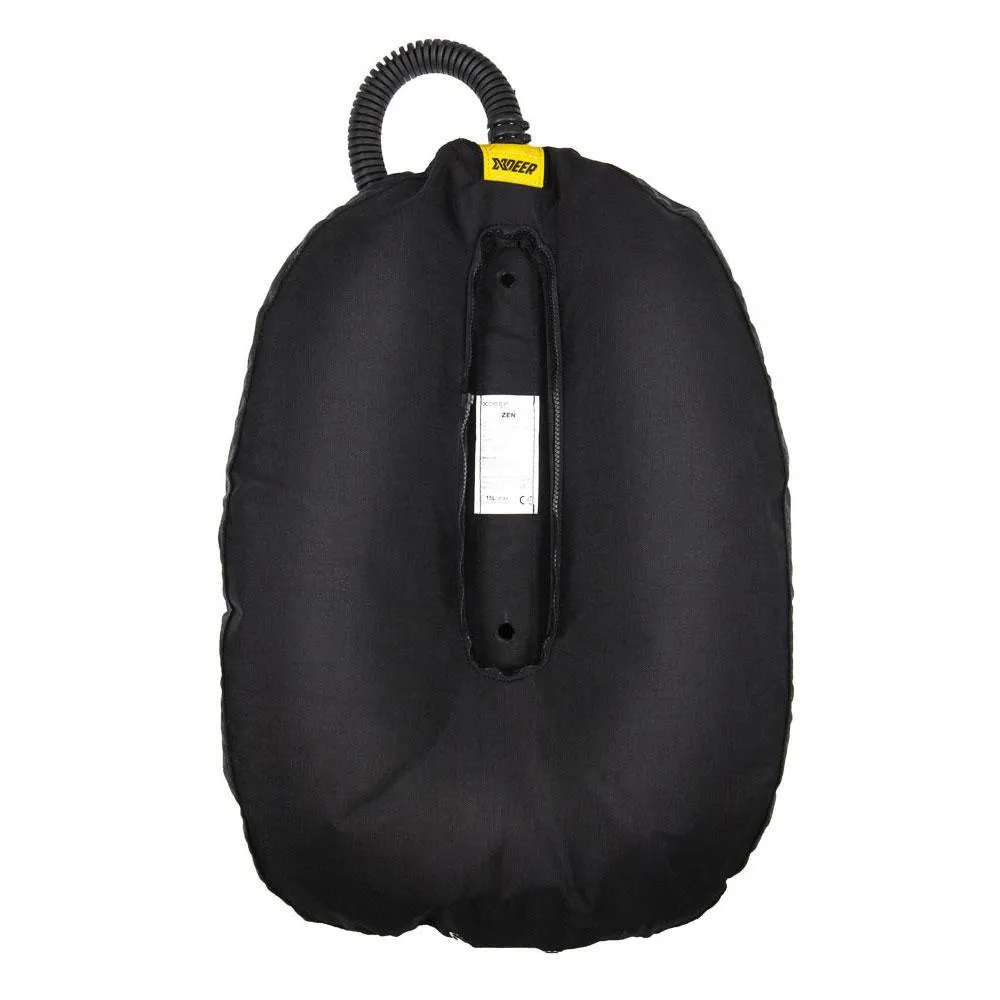 Salte em qualquer barco de mergulho nos últimos 20 anos e cada BCD que você vir será uma pequena variação em um tema. O NX ZEN é o resultado da nossa paixão em romper com essa tradição, do que funciona, até o que funciona em um nível inédito. A desconstrução de projetos tradicionais, trazendo a experiência e a experiência em mergulho técnico do XDEEP, levou a uma mudança radical no design e na aplicação do BCD. A asa do ZEN é deliberadamente estreita para que não se sobressaia do lado do seu tanque. Isso traz vantagens em melhorar seu controle de flutuação, na redução de quaisquer riscos de emaranhamento e na redução significativa do arrasto. À medida que reduzimos o arrasto, normalmente melhoramos nosso consumo de gás, permitindo mergulhos mais longos e seguros. Como isso é possível? Asas tradicionais têm uma grande zona central morta. Sem bexiga de ar, apenas tecido. Ao utilizar este espaço de forma mais eficaz, reduzimos consideravelmente a zona morta, o que significa que podemos reduzir o tamanho total da bexiga.