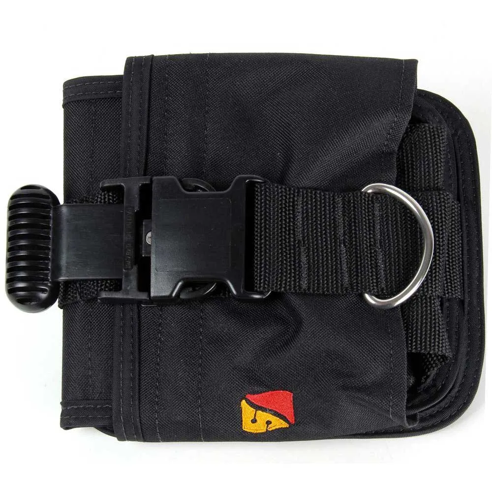Enkel, topplastficka skyddar dykare från en oavsiktlig flytningshändelse genom att hålla vikten ordentligt på plats. Sliten i vinkel på midjebältet för att få lättare åtkomst, är den högra fickan identifierad av Dive Rite-logotypen medan vänsterfickan är slät, utan en logotyp.
