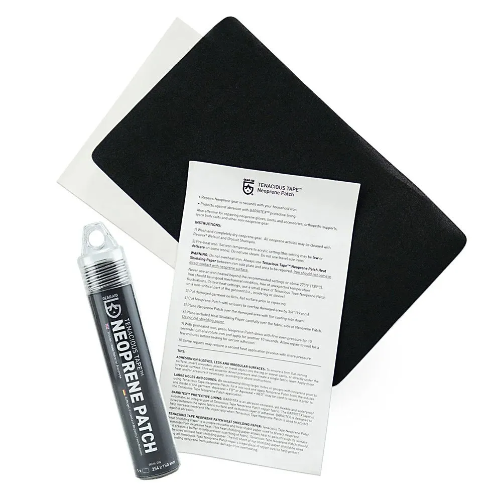 Förläng livslängden på din utrustning med GEAR AID Iron Mend. Denna strykbara och tåliga tejp ger starka, flexibla och permanenta reparationer för neopren på några sekunder. Perfekt för våtdräkter, torrdräkter, vadarbyxor och handskar, den använder ett vanligt hushållsstrykjärn för snabb applicering. Fodrad med tålig Barritex™ ger den överlägsen nötningsbeständighet för att skydda utsatta områden. Stretchtyget säkerställer att din utrustning förblir bekväm och flexibel. Byt inte ut den, reparera den! Detta kit gör det enkelt att laga revor och hål, så att du kan komma ut igen
