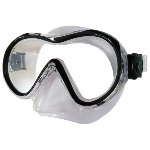 Masken har en dubbel silikontätning, som skapar ett tätt fäste runt ansiktet för att förhindra att vatten tränger in i masken. Den temperade glaslinsen ger klar och skarp syn under vatten, och den justerbara remmen säkerställer en säker och bekväm passform.