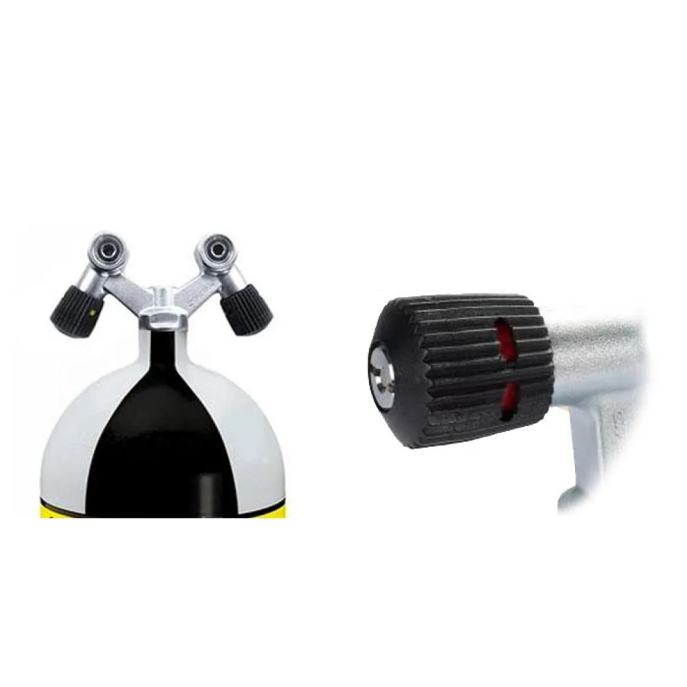 Upplev förbättrad kontroll över din lufttillförsel med Model D:s intuitiva design. Det ergonomiska handtaget ger ett bekvämt och säkert grepp, även med handskar, vilket möjliggör enkel användning och exakta justeringar. Ventilens smidiga funktion säkerställer ett konsekvent och förutsägbart luftflöde, vilket gör att du kan finjustera din andning och spara luft effektivt. Den positiva avstängningsfunktionen ger ett extra säkerhetslager, vilket förhindrar oavsiktlig luftförlust och maximerar din dyktid.