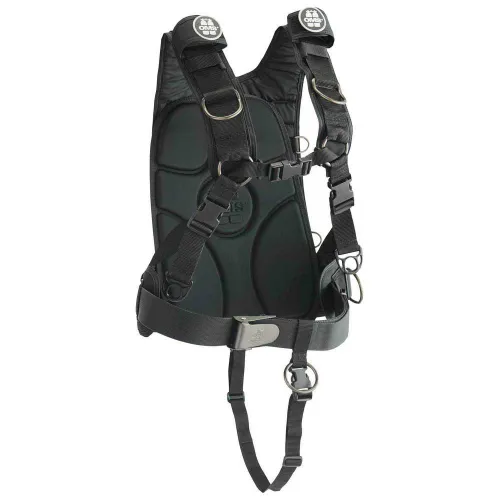 Den gjutna bakstycket gör det möjligt att sätta in en bakplatta för dubbla tankdykning, extra vikt eller kan användas för att lagra SMB eller annat.