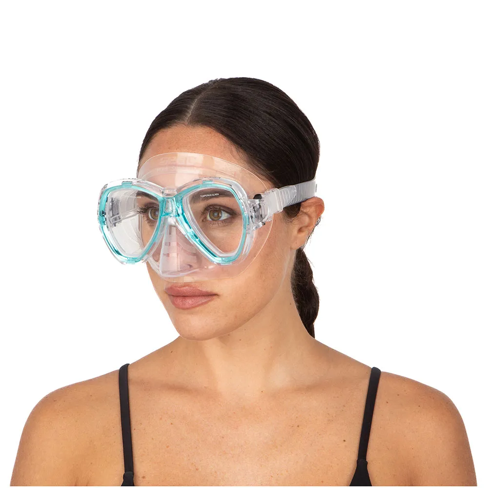 Denna högkvalitativa mask hyllas för sina utmärkta material, härdat glas och mycket bekväma design. Det är en utmärkt mask för snorkling och fridykning, som erbjuder en perfekt passform för ett brett spektrum av användare. Idealisk som juniormask för barn och tonåringar, dess mångsidiga design ger också en bekväm och säker passform för vuxna, vilket gör den till ett fantastiskt och prisvärt val.