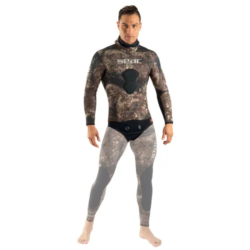 Seac Ghost jacka i 7 mm Ultrastretch neopren med inbyggd huva, repasäker Powertext underarmskydd, bäversvans, stängning med två plastsnurrar och melco-bandbröstkudde.