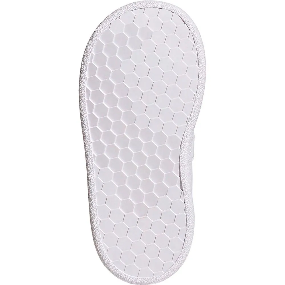 Disse adidas-sko til spædbørn har krog-og-løkkestropper, så de er nemme at tage af og på og en polstret, behagelig følelse.