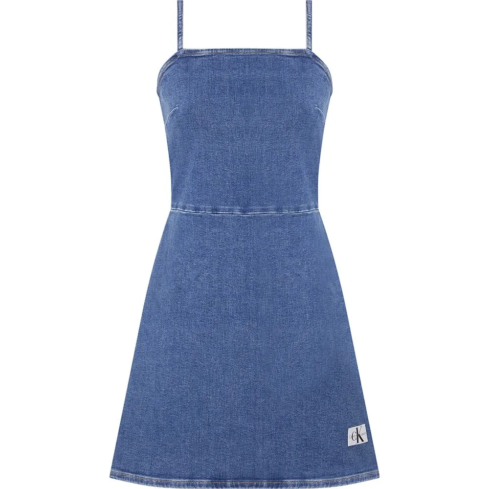 Calvin klein jeans kvinder denimkjole med stropper og badge-logo.