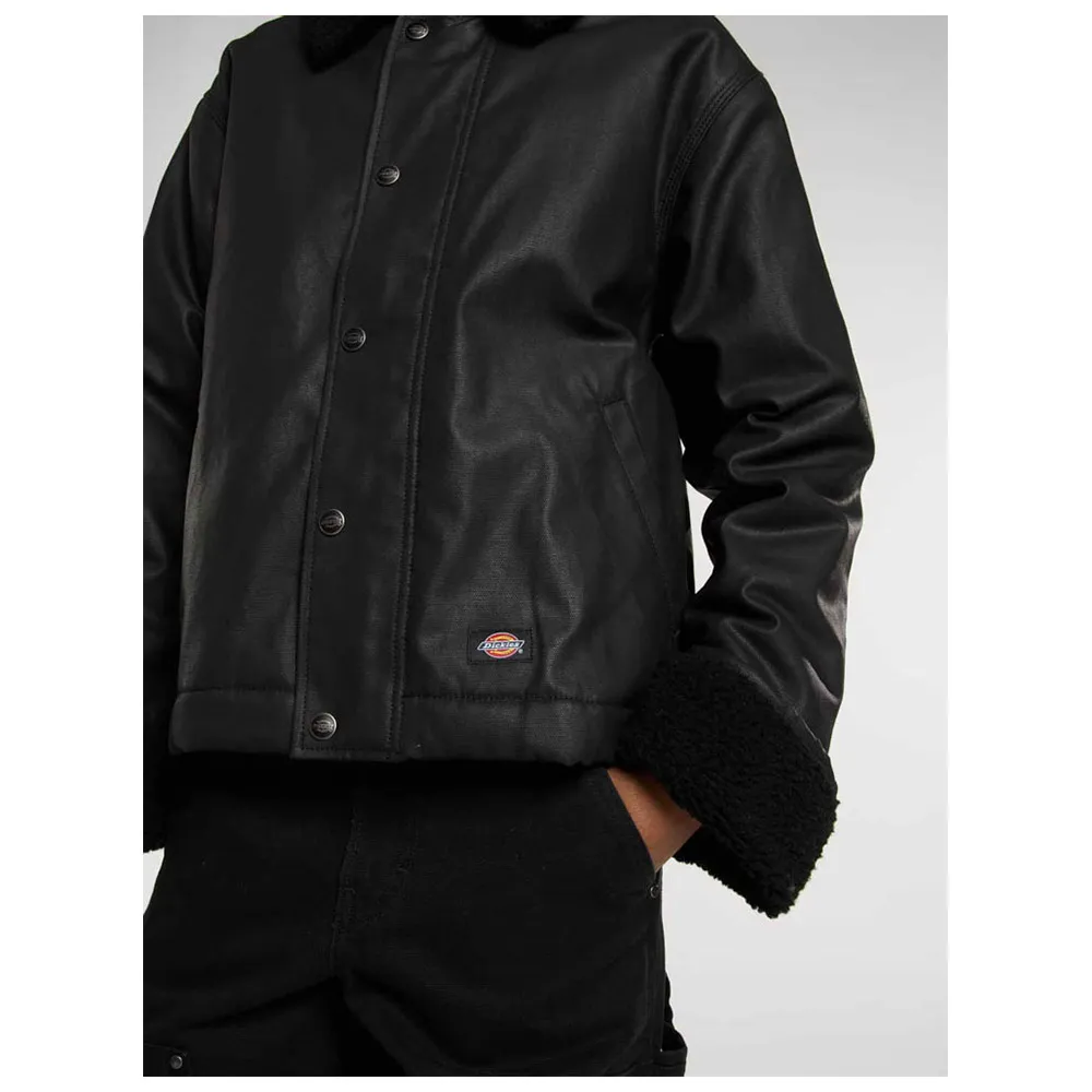 Opmærksomhed på detaljer er tydelig i de justerbare manchetter, som er afsluttet med robuste knapper, der giver dig mulighed for at tilpasse pasformen omkring dine håndled for ekstra komfort og for at holde kulden ude. Jakken er fremstillet af et slidstærkt og åndbart bomuldsstof og føles solid, men behagelig mod huden. Dens klassiske arbejdstøjsprofil er bevidst designet uden hætte og har en skarp, ren krave, der bidrager til dens tidløse æstetik og gør den ideel til lag-på-lag. Det ikoniske Dickies logo-mærke vises stolt og signalerer en forpligtelse til kvalitet og autenticitet.