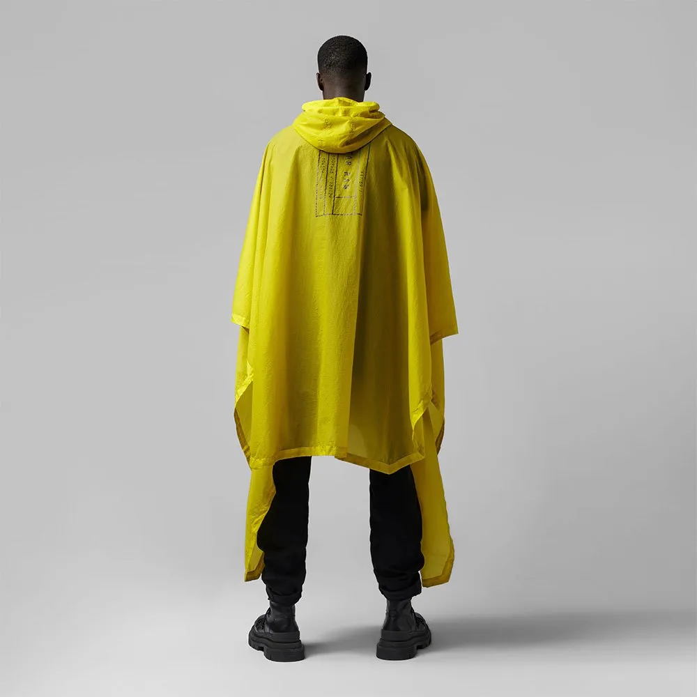 En lynlåslomme er placeret nedenunder, der skjuler en poncho indeni.