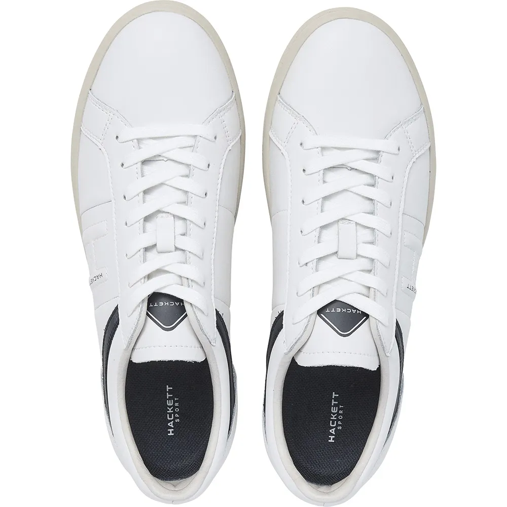 Bond Active sporty sneaker med kontrastlinjedetalje i kraven, fremstillet i genanvendt læder, tofarvet ydersål lavet i fuld gummi med Hackett Sport logo, udtagelig indersål, Hackett Sport og ´´ H ´´ monogram logoer på siden.