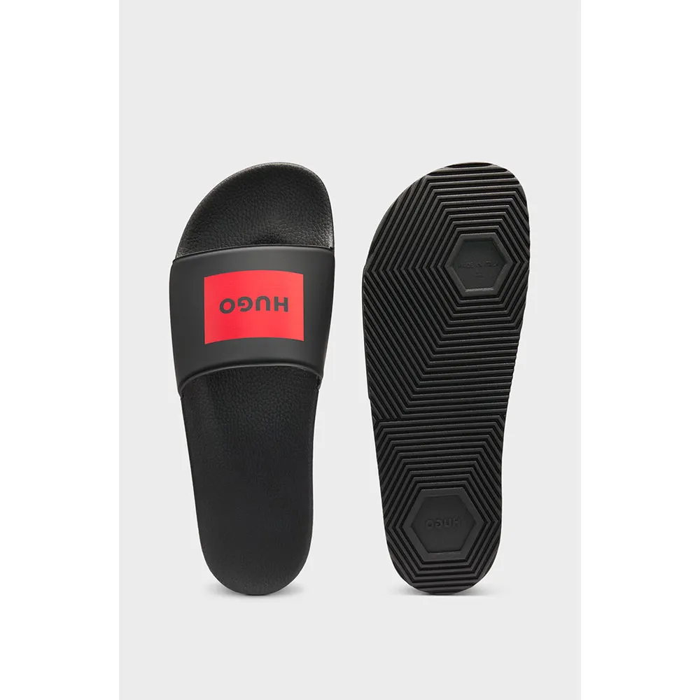 Disse sandaler er mere end bare komfortable; de er en stilerklæring. Det slanke, minimalistiske design har den ikoniske HUGO branding, der tilføjer et strejf af underspillet sofistikering til dit casual look. De rene linjer og den moderne silhuet gør disse sandaler alsidige nok til at kombinere med alt fra badebukser og shorts til casual chinos og linnedskjorter. Løft din hverdagsstil med fodtøj, der ubesværet blander komfort og mode.