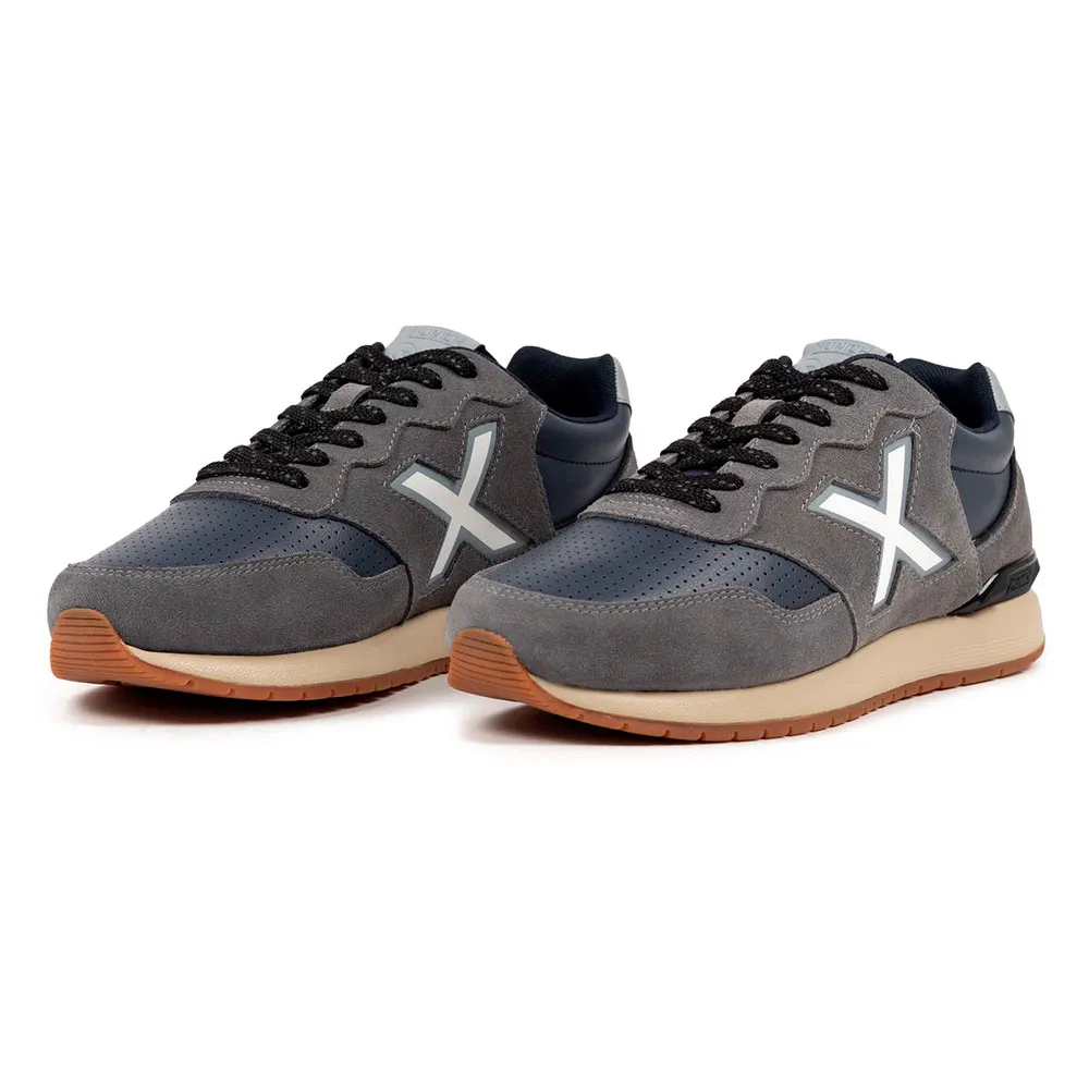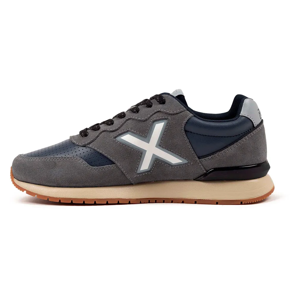 Overdelen er konstrueret af syntetiske materialer af høj kvalitet, valgt for deres enestående holdbarhed, lette følelse og nemme vedligeholdelse. Disse avancerede materialer skaber en struktureret, men fleksibel pasform, der giver pålidelig støtte, hvor du har mest brug for det. De indviklede paneler og overlejringer tilføjer ikke kun skoens visuelle dybde, men forbedrer også dens strukturelle integritet, hvilket sikrer, at den holder til hverdagens krav. Det ikoniske MUNICH ´X´-logo vises stolt på siden, et kendetegn for kvalitet og autentisk europæisk design.