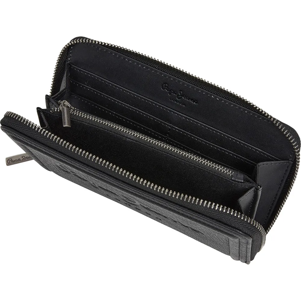 Giv din stil et løft, og opbevar dine vigtigste ting sikkert med PEPE JEANS Code Damepung. Dette smarte tilbehør har avanceret RFID-blokerende teknologi, der skaber et beskyttende skjold for at forhindre digitalt tyveri og holde dine finansielle oplysninger sikre. Indvendigt er der nem organisering med flere kortlommer og en sikker indvendig lynlåslomme til mønter. En glat lynlås, der går hele vejen rundt, sikrer, at alt forbliver pænt på plads. Fremstillet af tekstureret syntetisk materiale af høj kvalitet og afsluttet med et diskret præget logo er den den perfekte fusion af urban stil og hverdagsfunktion