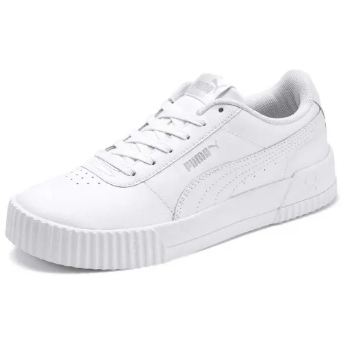 Carina L tager inspiration fra stilarter fra 80'erne fortolket, så de passer til nutidens afslappede sneaker-look i californiske strandbyer. Læderoverdelen er accentueret af en perforeret vamp og en PUMA-formstribe. Højdepunktet i skoen er det nye skålsålsværktøj, dog med en let forhøjet platformssål med teksturinteresse i tå- og hælområdet og kattemærke i medialet. SoftFoam + indersålen giver overlegen dæmpning og optimal komfort til hvert trin på din dag.