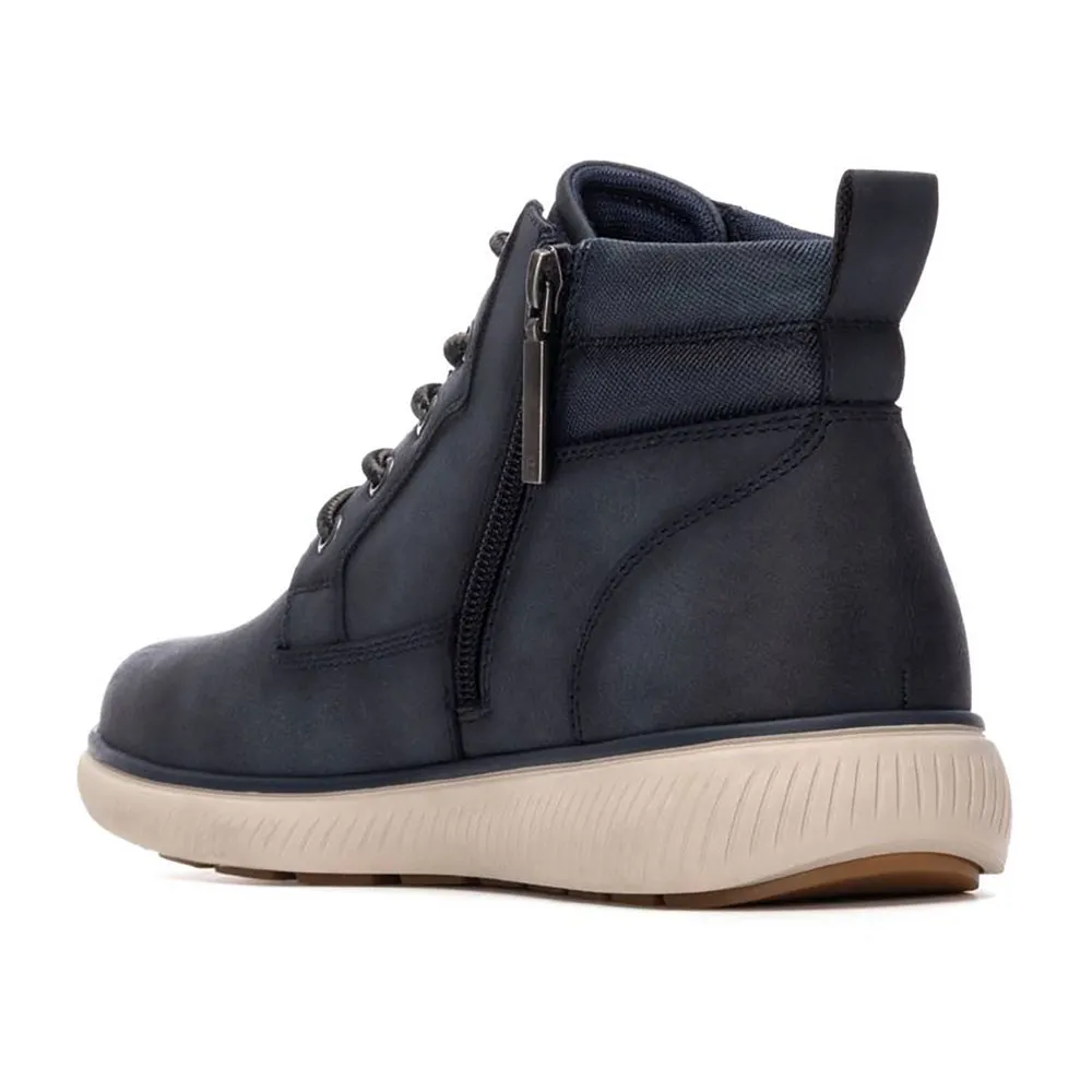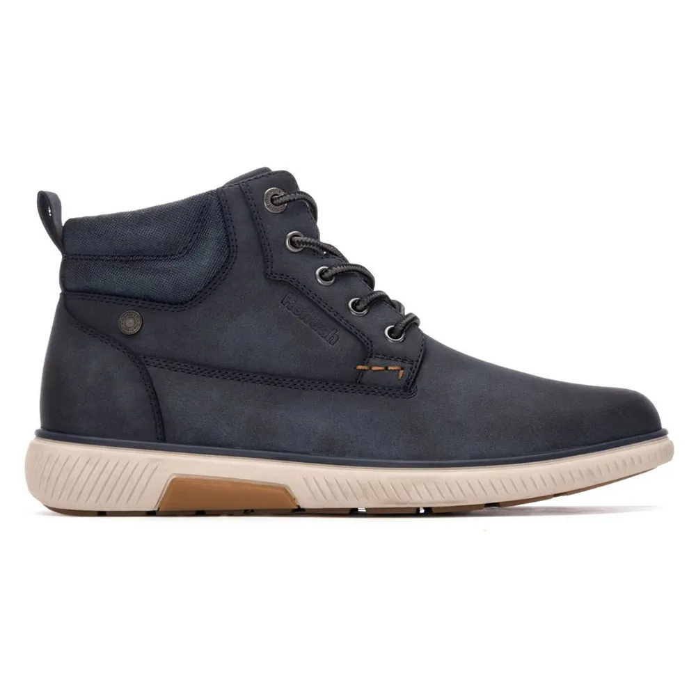 Herre ankelstøvle fra mærket Refresh. Fremstillet i et nubuck-lignende materiale. Polstret krave for øget komfort. Indvendig lynlåslukning. Justerbare rørformede snørebånd for bedre pasform. Trækstrop bagpå for nem på- og aftagning. Skridsikker gummisål. Udtagelig indersål. Denne model er blevet certificeret vegansk af den globale organisation PETA (Dyrenes Rettigheder Organisation).