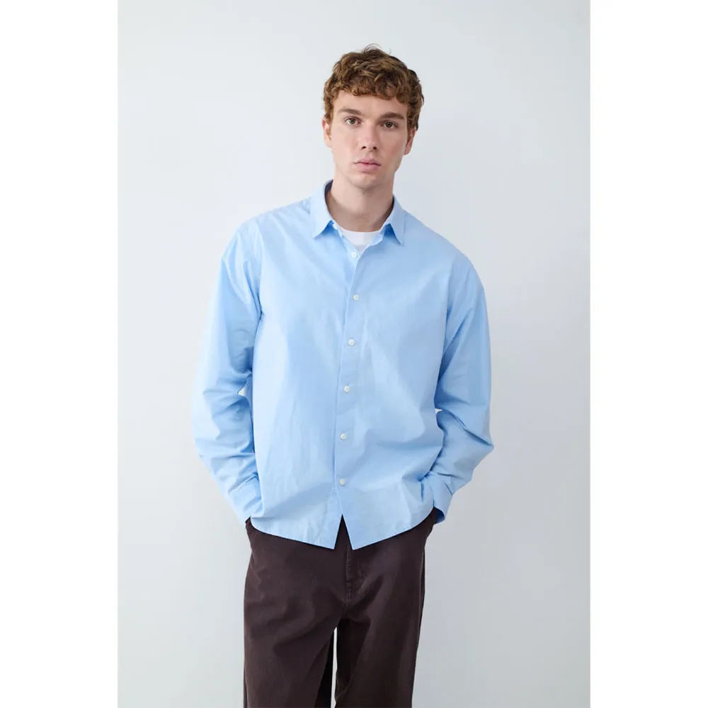 Das Design des Retiro-Hemdes wurzelt in minimalistischer Eleganz. Seine einfarbige Farbgebung dient als vielseitige Leinwand, die endlose Styling-Möglichkeiten ermöglicht. Es verfügt über einen knackigen, klassischen Hemdkragen, der einen Hauch von sartorialer Raffinesse verleiht, das Gesicht umrahmt und der entspannten Silhouette Struktur verleiht. Die durchgehende Knopfleiste auf der Vorderseite bietet Funktionalität und Styling-Optionen – tragen Sie sie vollständig zugeknöpft für einen sauberen, smart-casual Look oder lassen Sie sie offen über einem Premium-T-Shirt für eine ausgefallenere, geschichtete Ästhetik. Die langen Ärmel sind mit geknöpften Manschetten versehen, die für einen formellen Touch heruntergelassen oder für eine lässigere Atmosphäre hochgekrempelt werden können.